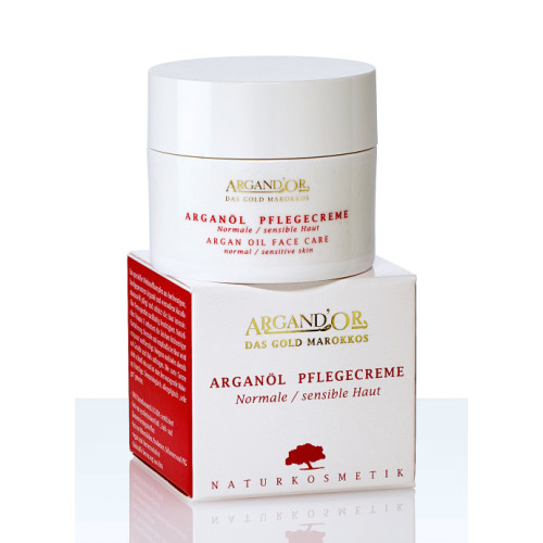 Ein wertvoller Wirkstoffkomplex aus handgepresstem Argan-Hautöl, Vitamin E, pflegendem Macadamianussöl, feuchtigkeitsbindender Aloe-Vera und Sheabutter aus kontrolliert biologischem Anbau pflegt und schützt die Haut intensiv und nachhaltig. Die Pflegecreme für sensible und normale Hauttypen beugt frühzeitiger Hautalterung vor. Die Haut wird gepflegt, regeneriert und vor Austrocknung bewahrt. Sie wirkt glatter und bekommt mehr Ausstrahlung. Die Creme zieht schnell ein und vermittelt ein angenehm zartes und geschmeidiges Hautbild. Ideal auch als Make-up Unterlage.