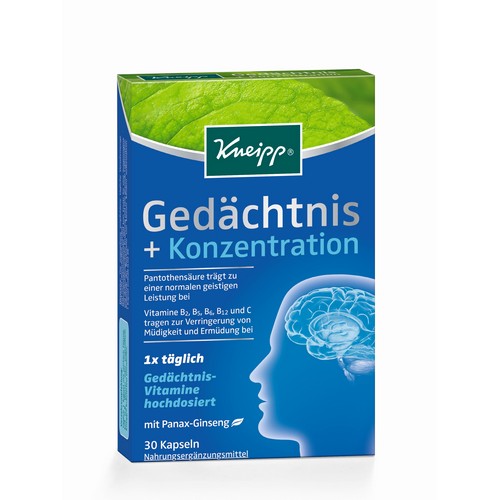Kneipp Gedächtnis und Konzentration Kapseln enthalten mit hochdosierten Gedächtnisvitaminen und Panax Ginseng eine wirkungsvolle Nährstoffkombination, welche ideal auf die Funktion des Gehirns und der Nerven abgestimmt sind.