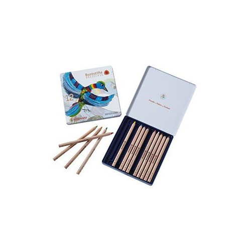Enthalten sind 12 Buntstifte und 1 Bleistift der Stufe B in einem farbenfrohen Etui.