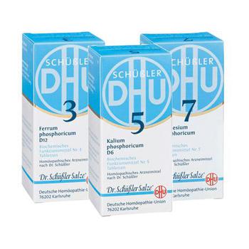 Schüßler-Salze Nr. 3 Ferrum phosphoricum, Nr. 5 Kalium phosphoricum und Nr. 7 Magnesium phosphoricum sind eine tolle Kombination.