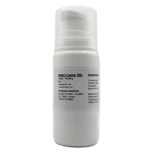 Dimethylsulfoxid 15 g, Carbomer 500000 0,3 g, Eukalyptusöl 2 Tropfen, Pestalozzi Basiscreme ad 95 g