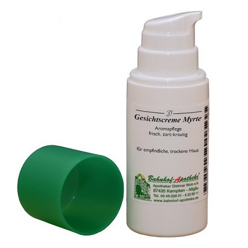 Die frische, zart-krautige Gesichtscreme Myrte pflegt und schützt anspruchsvolle, sensible und trockene Haut. Die pflegende Sheabutter in Kombination mit dem hochwertigen Mandelöl sorgen für Geschmeidigkeit, nähren und stärken den Feuchtigkeitsmantel der Haut. Klärende Auszüge der Myrte und Myrtehydrolat harmonisieren und helfen, den Aufbau der Haut zu stärken.