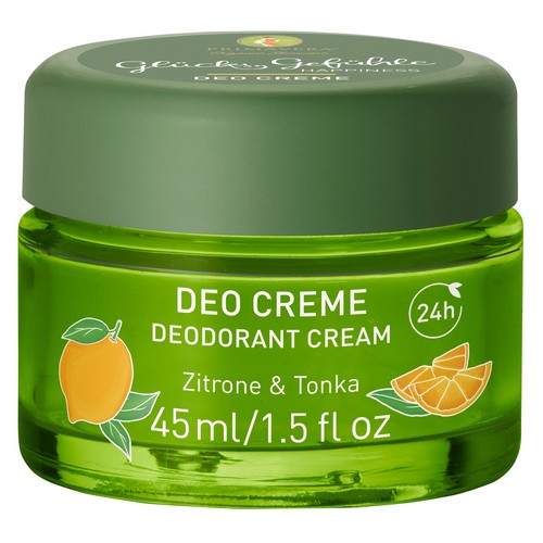 Die vegane Deo Creme Glücksgefühle bietet duftenden 24-Stunden-Schutz ohne Aluminiumsalze. Sie desodoriert mit einer Pflanzenkraftkomposition aus Bio Kokosöl, Bio Sheabutter und Bio Benzoe Siam. Sie wirkt antibakteriell, geruchsabsorbierend und -neutralisierend, sowie antiirritativ und feuchtigkeitsbindend allein durch die Kraft naturreiner Inhaltsstoffe. Ihr sonnig-leichter Duft aus Bio Zitrone und Bio Tonka wirkt inspirierend und erfrischend, und schenkt einen Moment des Glücklichseins.