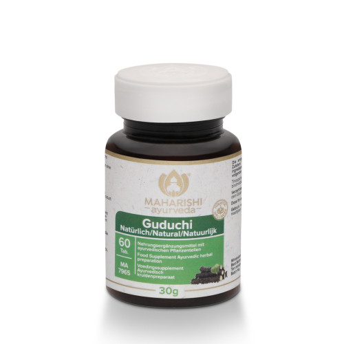 Guduchi, auch unter dem Namen Tinospora Cordifolia bekannt und sehr vielfältig im Ayurveda verwendet, ist eine tropische Schlingpflanze mit herzförmigen Blättern. Guduchi wird auch „Amrita“ - die Unsterbliche - genannt.