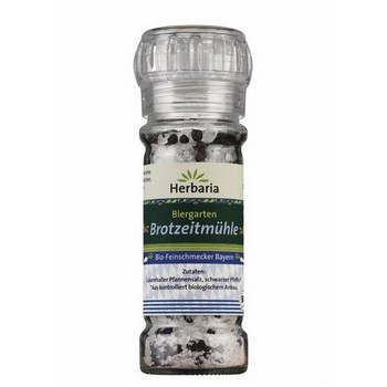 Herbaria Biergarten-Brotzeitmühle ist ein Bio-Gewürzsalz für die typisch bayerische Brotzeit in der Mühle. Die klassische Mischung aus Luisenhaller Pfannensalz und schwarzem Pfeffer eignet sich für jeden und jede Brotzeit. Harmonische Kombination aus dem Luisenhaller Pfannensalz mit seiner milden Würze und dem schwarzen Pfeffer aus Sri Lanka, welcher eine intensive Schärfe und ein starkes volles Aroma besitzt. Die Biergarten-Brotzeitmühle ist der ideale Begleiter einer typisch bayerischen Brotzeit. Ob auf Tomaten, Radieschen, Rettich, Gurken, Käse oder Eiern. Mit der Mühle auf dem Tisch, kann alles direkt und einfach nachgewürzt werden. Einfach frisch über das Essen mahlen und genießen!