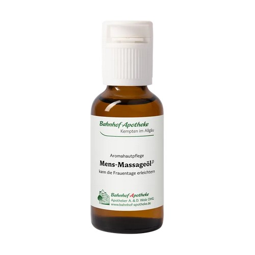 Das Mens-Massageöl aus hochwertigen naturreinen ätherischen Ölen wie Ho-Holz, Kamille römisch, Majoran, Melisse, Muskatellersalbei und Rosenholz pflegt die Haut und trägt vor und während der Menstruation zur Entspannung im Unterleib bei. Bereits Schülerinnen tragen das Massageöl sicherheitshalber in ihrer Tasche mit, so ist es allzeit bereit.