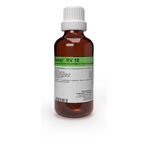 ReVet® RV 10 - oral - (Globuli) wird in etwas Wasser aufgelöst eingegeben. Die Globuli dürfen auch aufgelöst mit etwas Nahrung oder Tränke verabreicht werden. Die Häufigkeit und Dauer der Anwendung richtet sich in erster Linie nach den Grundsätzen der Homöopathie, wonach bei beginnender Besserung seltener dosiert wird und nach Erreichen des Normalzustandes zunächst keine weitere Anwendung erforderlich ist.