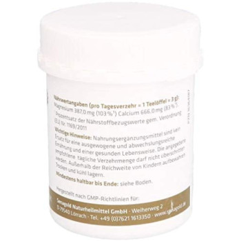 Nährwertangaben: pro empfohlene Verzehrmenge (1 Teelöffel = 3 g) Magnesium 360,0 mg (96% *) Calcium 660,0 mg (83% *) * Prozent der empfohlenen Tagesdosis lt. NKV neu
