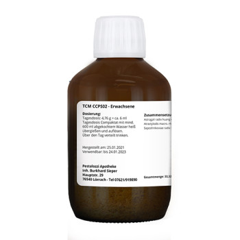 Für eine Tagesdosis mit der Dosierkappe 4,76 g = ca. 6 ml des Compaktats abmessen, mit mindestens 300 ml abgekochtem Wasser heiß übergießen und auflösen. Über den Tag verteilt trinken. Anwendungsdauer: 7 Tage